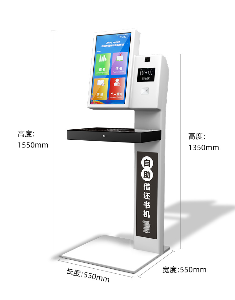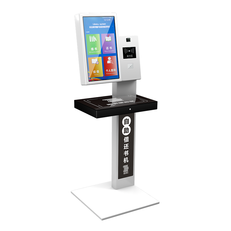 自助借还系统设备是自助借还书机一种新型的智能化设备,配备触摸显示屏或简单操作的人机交流界面、图形界面,通过协议或其他网络及专用接口与图书馆自动化系统数据相连接,由读者自行借还馆内书籍资料;帮助图书馆在有限的人力资源条件下,增进图书流通速率、简化借还流程,便利读者快速准确的完成借还,进而提高图书馆从业人员工作效率及服务品质的一种自助设备