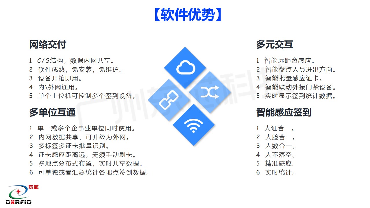 东芯科技RFID无障碍感应签到管理系统解决方案基于射频识别技术( RFID ),在物联网环境下,以RFID远距离非接触感应技术为基础,以智能