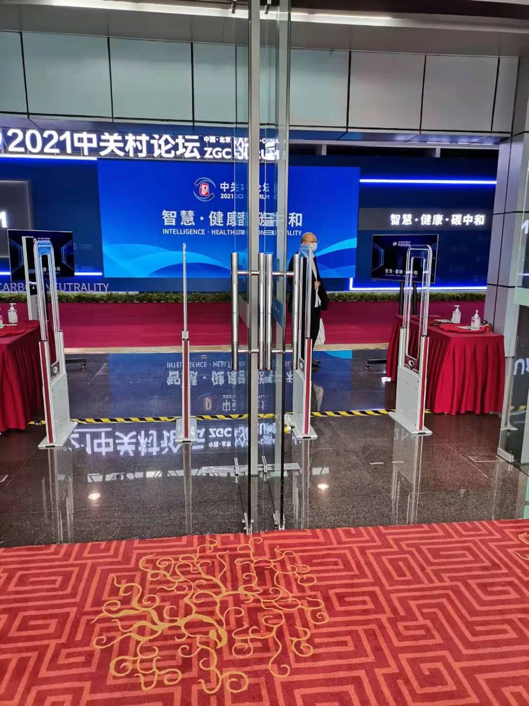 每个场会门口都摆放了双通道无障碍智能签到门,保证了参会人员到场签到的准确性